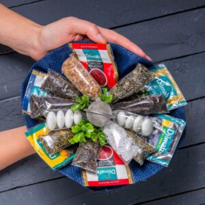 Bukiet herbaciany to unikalny zestaw skierowany do prawdziwych entuzjastów herbat liściastych. Starannie skomponowany, łączy różnorodne smaki i aromaty herbat z całego świata, oferując bogactwo doznań sensorycznych. W tym oryginalnym zestawie herbacianym znajdziesz nie tylko wyselekcjonowane herbaty, lecz także praktyczne dodatki, takie jak sitko do zaparzania, kryształki cukru oraz czerwone pastylki do słodzenia. Całość została zaprezentowana w formie efektownego bukietu kwiatowego, co czyni produkt nie tylko funkcjonalnym, ale również niezwykle dekoracyjnym. Dzięki wysokiej jakości składnikom i estetyce wykonania, bukiet jest idealnym wyborem dla wielbicieli herbaty szukających wyjątkowego prezentu.