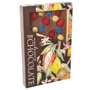 Czekolada Exclusive The Chocolate mleczna z orzechem laskowym, maliną i jagodą to wyjątkowa kompozycja smaków, która zachwyca zarówno intensywnością, jak i harmonią połączeń. Aksamitna mleczna czekolada stanowi doskonałą bazę dla chrupiących kawałków orzechów laskowych oraz owocowej nuty malin i jagód, nadających całości lekko kwaskowy, świeży akcent. Każdy kęs tej tabliczki to połączenie delikatnej słodyczy, kremowej konsystencji i owocowo-orzechowej głębi.